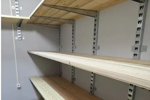 Данный параметр зависит от нагрузок на стеллаж и материал полок (лдсп 18-22мм, фанера, ОСБ, или доска)